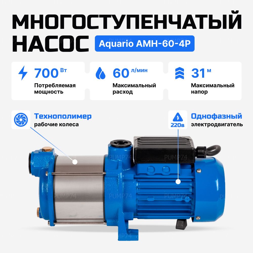 Поверхностный насос Aquario AMH-100-6P представляет собой надежное и эффективное решение для организации водоснабжения в частных домах, дачах и других небольших объектах. Этот насос отлично справляется с подачей воды из открытых водоемов, колодцев и резервуаров на малые и средние расстояния, обеспечивая стабильную работу в самых различных условиях. Особенности модели Aquario AMH-100-6P: насос отличается высокой производительностью и