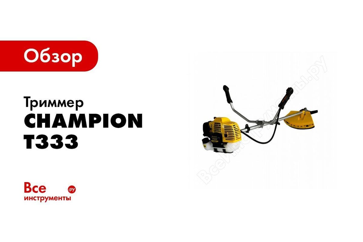 Триммер CHAMPION Т333-2 – это надежное и эффективное устройство для ухода за приусадебными участками, садами и огородами. Он идеально подходит для косилки травы, а также для выполнения других работ по благоустройству территории. Этот бензиновый триммер сочетает в себе мощность, удобство в использовании и долговечность, что делает его популярным выбором среди садоводов и дачников. Модель CHAMPION